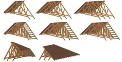 預(yù)制梁柱式構(gòu)件與木桁架:裝配式木結(jié)構(gòu)建筑中最靈活的組件,需要在現(xiàn)場(chǎng)進(jìn)行二次加工。木桁架是指由木構(gòu)件組成的桁架,是木屋蓋、木塔架的主要承重結(jié)構(gòu)。